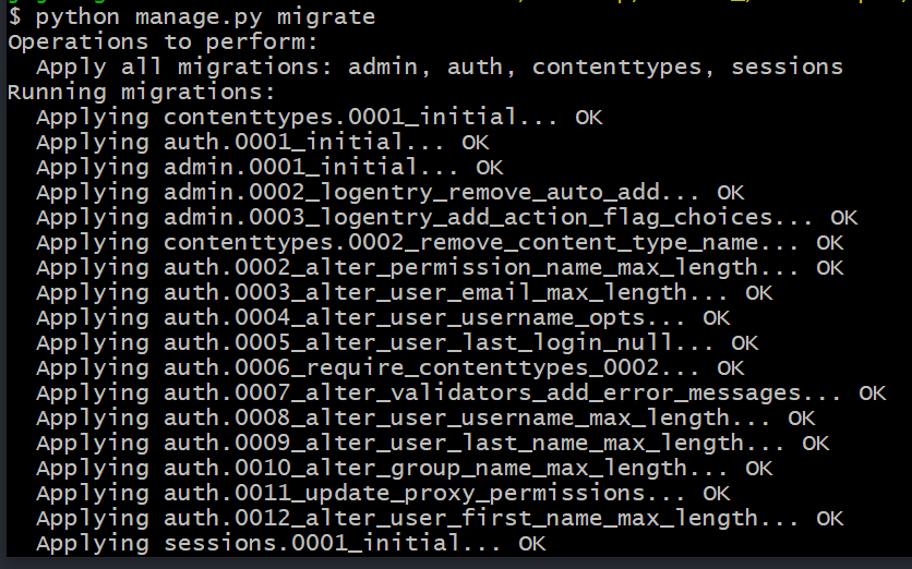 manage.py 파일이 main이다보니까 모든 실행시에 해당파일을 기준으로 migrate 할지 어떤 동작을 할지 입력하네요.