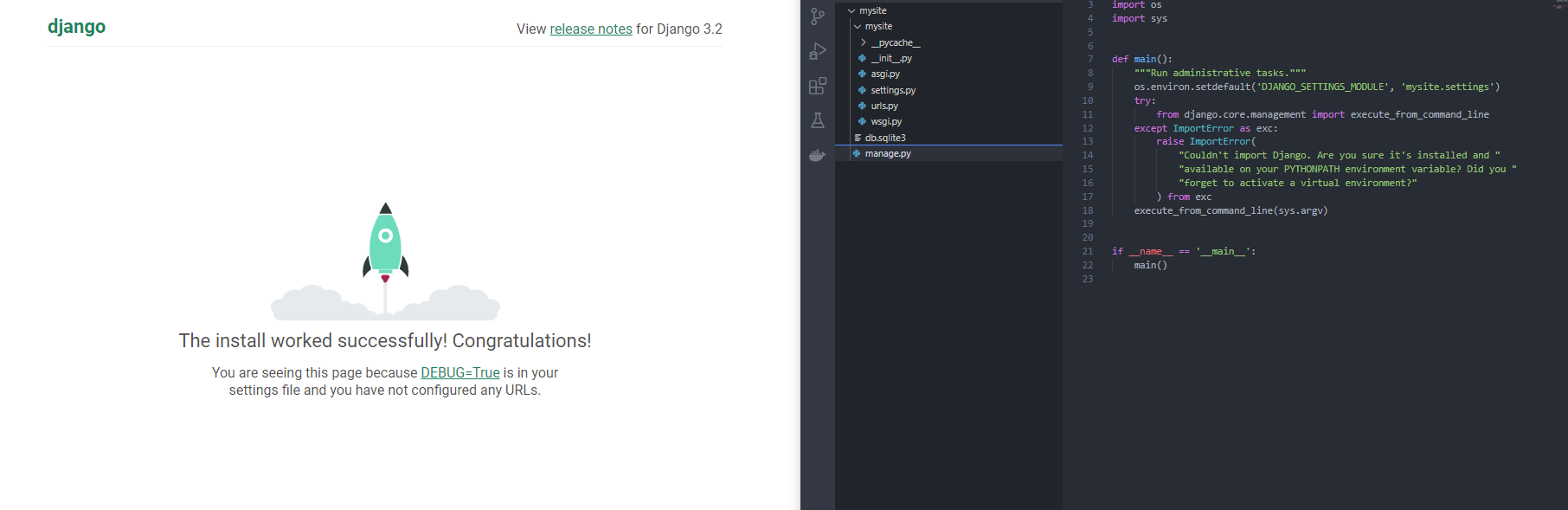 - mysite/settings.py: 현재 Django 프로젝트의 환경 및 구성을 저장합니다. Django settings에서 환경 설정이 어떻게 동작하는지 확인할 수 있습니다.