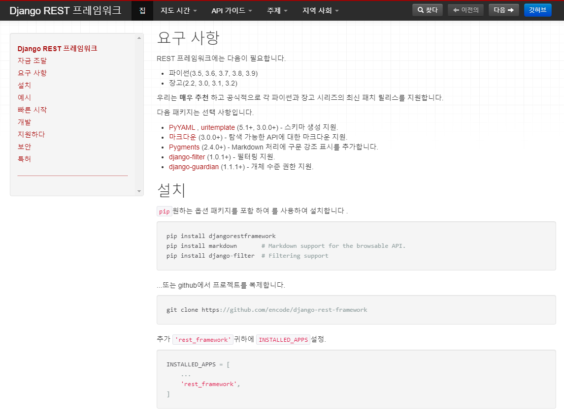 Django REST framework 설치가 필요하다고하여 설치 진행합니다.